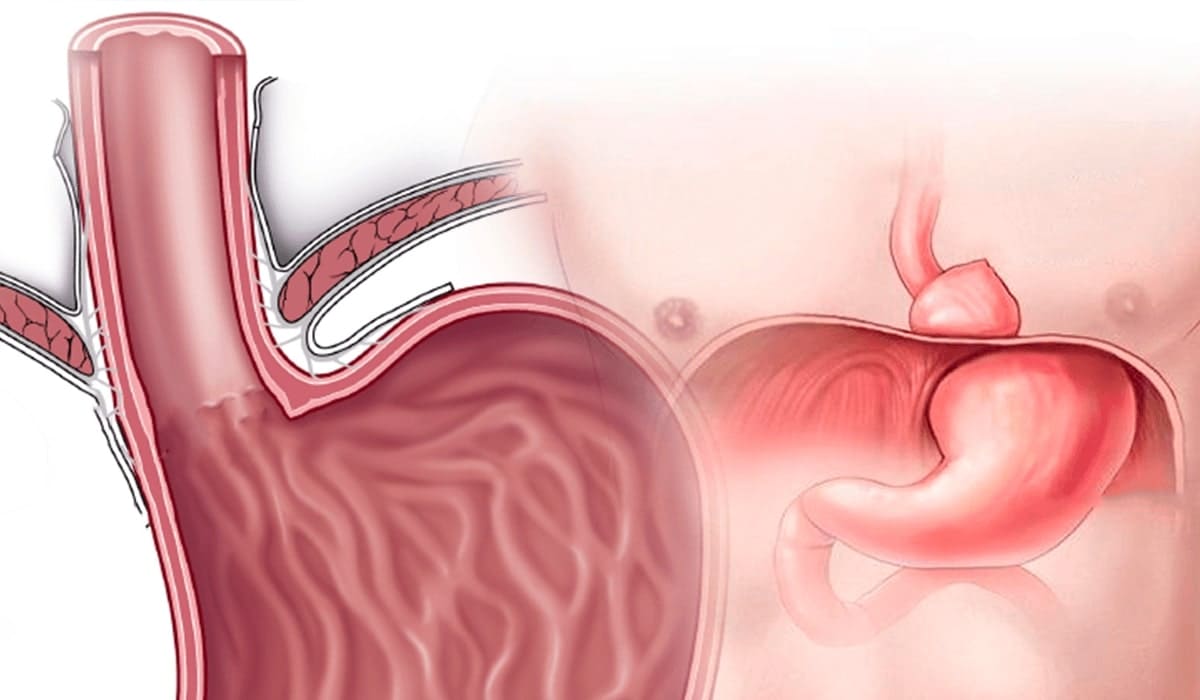 Una hernia hiatal ocurre cuando una parte del estómago se desplaza hacia el tórax a través del diafragma.